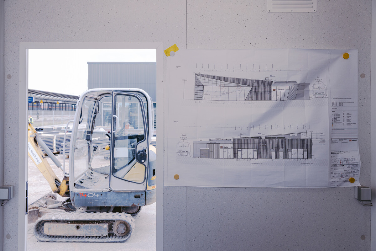 Entstanden ist das Empfangsgebäude auf den Umrissen des alten, maroden Gebäudes von 1857, das in keinem guten Zustand mehr war. „Eine Sanierung wäre zu aufwendig gewesen“, erzählt Hartmann. Eine Ecke des früheren Gebäudes, an der die Stromversorgung anliegt, blieb dabei aus technischen Gründen stehen, inklusive der Elektroanlage. Daneben hat Hartmann ein großes Fenster einbauen lassen, damit Reisende schon von der Bahnhofshalle aus auf die Gleise schauen können. Die Idee zum Neubau kursierte schon einige Jahre, konnte aber erst mit den Strukturfondsmitteln für die Kohleregionen Wirklichkeit werden. 2023 begann der Abbruch, im Oktober konnte der neue Grundstein gelegt werden. Im April 2024 stand bereits der Rohbau. Der Entwurf stammt vom Bahn-Architekten Stephan Böhning.